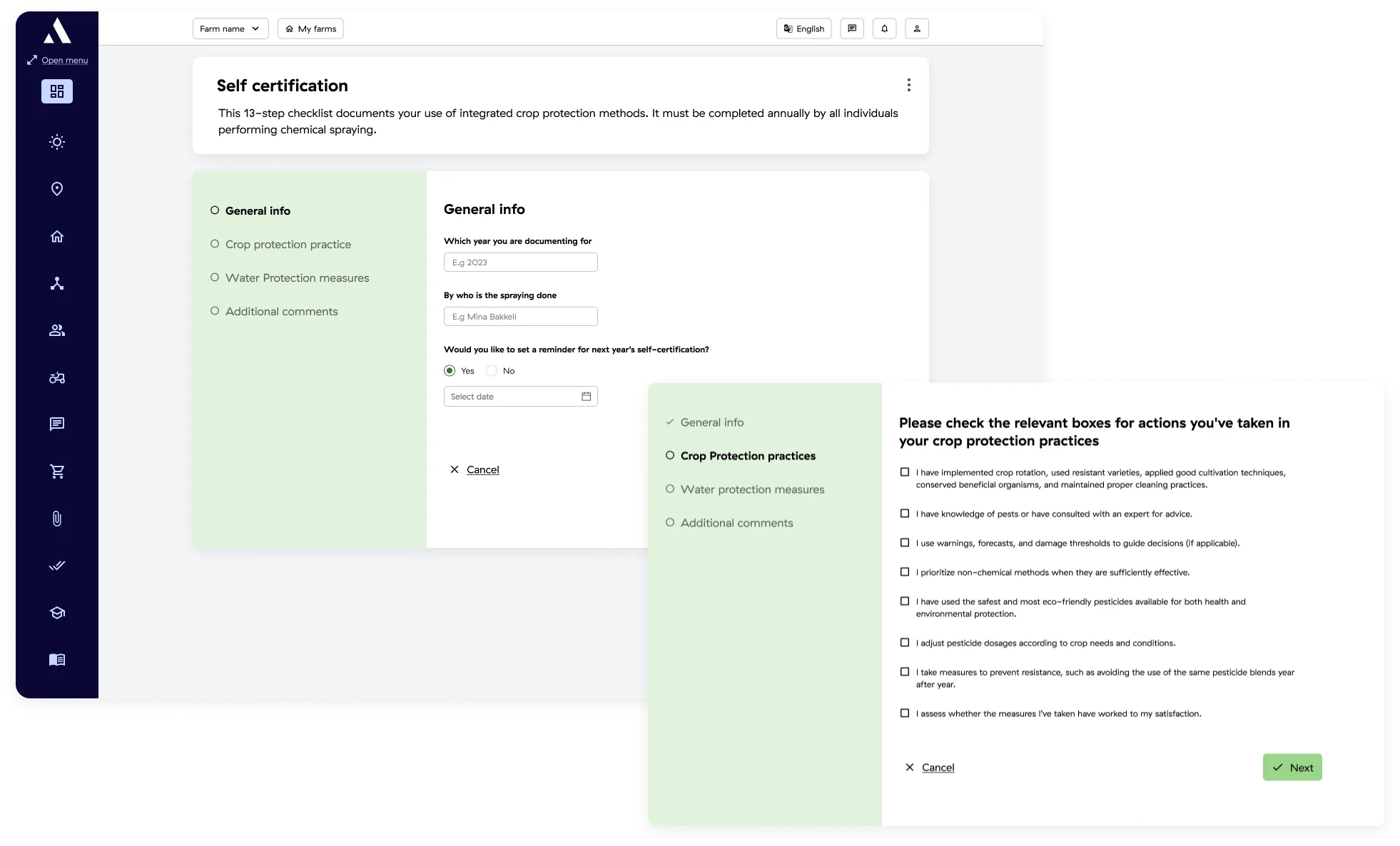 I Agdir Farm kan du loggføre doser, værforhold og tidspunkt i sanntid, slik at ingenting blir glemt.