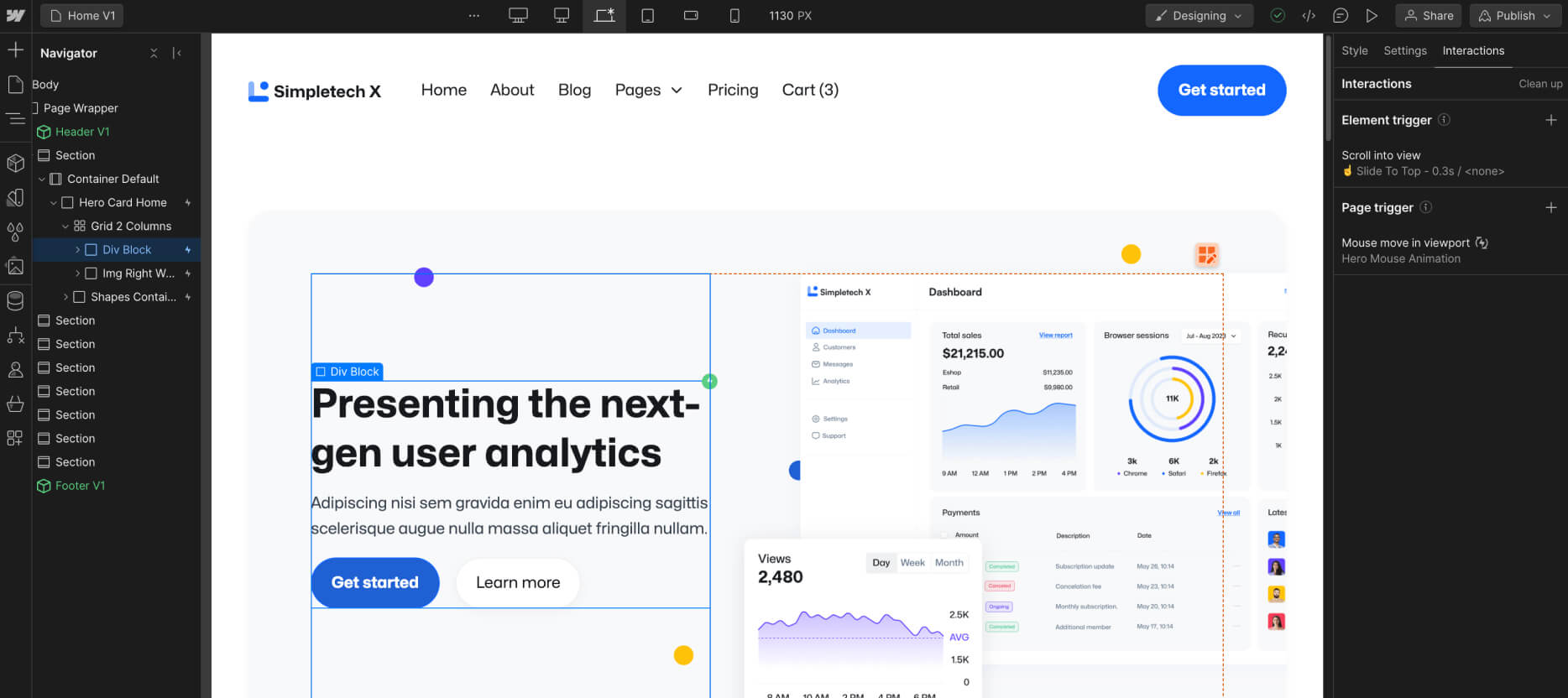 As you could see above, Simpletech X was built on Webflow using the best practices to make it very easy for you to edit the template and customize it to your needs.